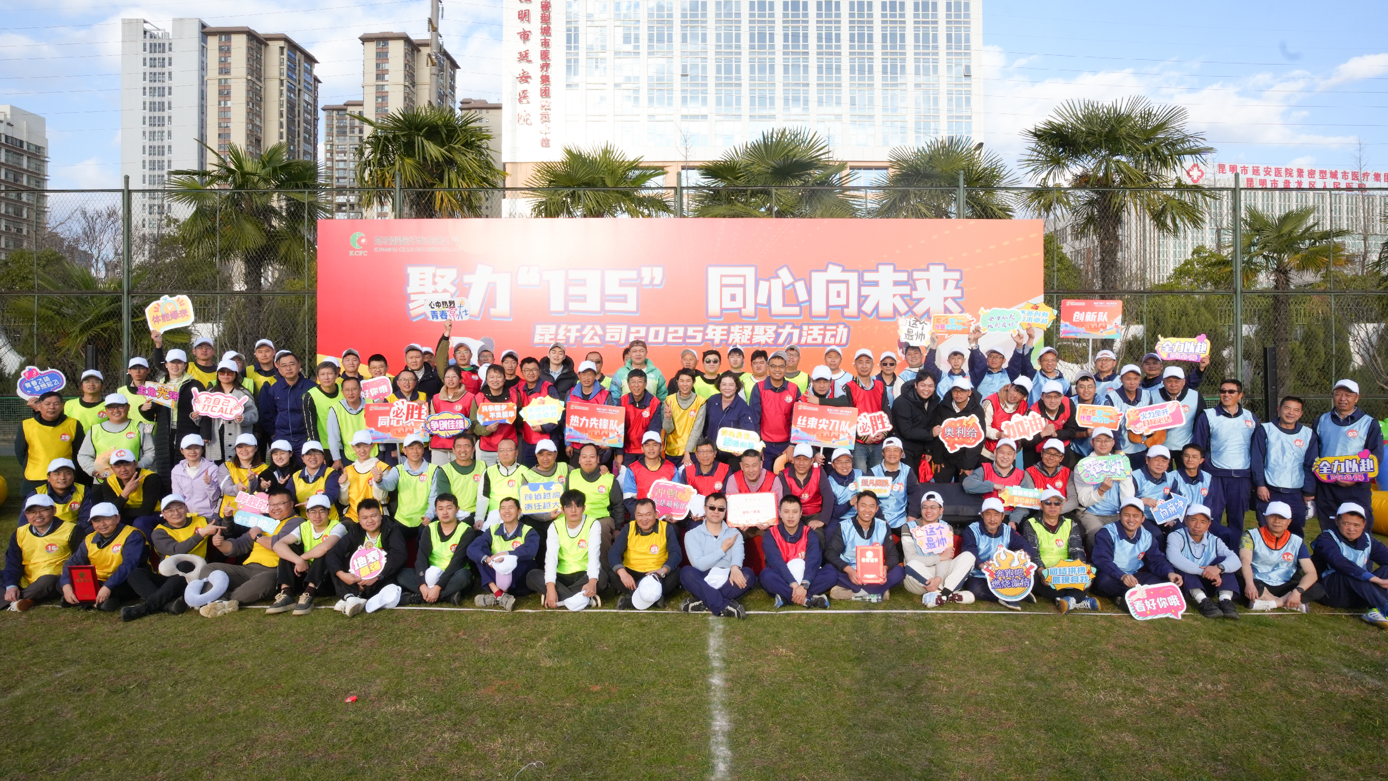 冬日暖阳映初心,凝心聚力向未来。2025年12月26日,昆纤公司“聚力‘135’同心向未来”2025年度凝聚力活动在公司足球场、网球场圆满举行。公司总经理室成员及四个基层工会120余名员工参加活动。活动在欢快的氛围中拉开序幕。现场设置了“摸高墙”,员工们纷纷书写新年寄语,通过协作摸高将寄语贴至墙上,...